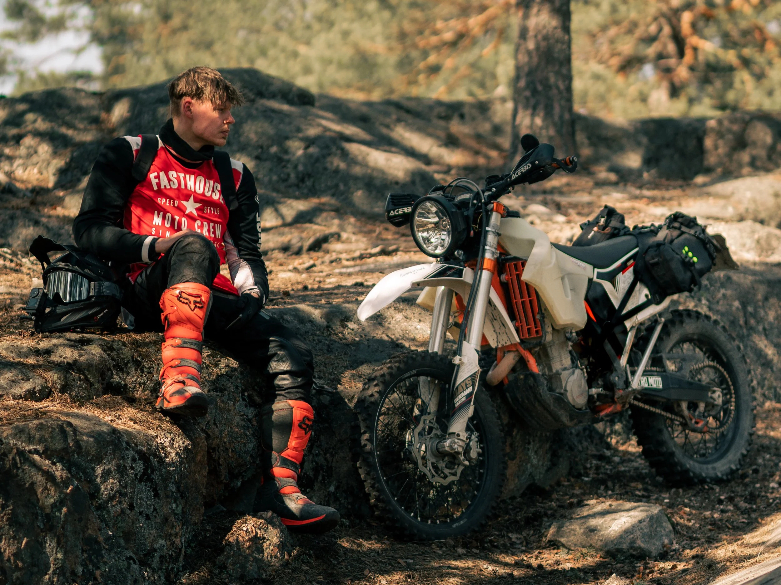 Imatralta lähtöisin oleva motoristi. Aloitin enduroinnin muutama vuosi sitten Suzuki dr:llä ja pian huomasin olevani ajamassa enemmän metsässä kuin maantiellä. Nykyään ajot ovat kaikkea seikkailupyöräilyn ja hard enduron väliltä ja kalustona toimii matkavarusteltu KTM Super enduro.